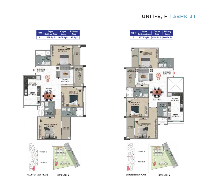 | Type 5 | 3 BHK | 1733 - 1770 sq.ft. |